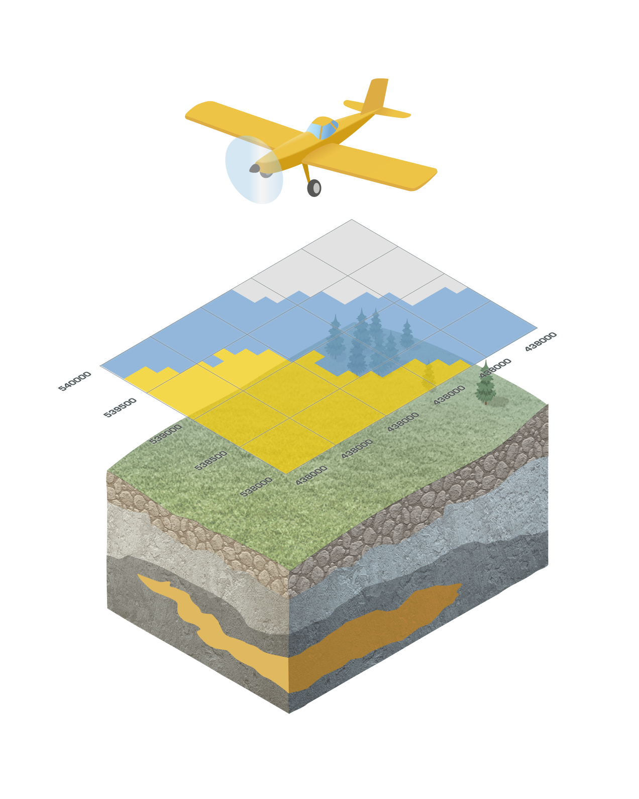 Geophysical measurements are carried out from the air, surface and underground. Airborne geophysical methods are typically carried out for mapping regional geological structures to delineate areas favorable to metal exploration. Common airborne surveys methods are magnetic, radiometric, gravity or electromagnetics. Airborne techniques are cost effective and time efficient, while significantly reducing environmental impact on large areas under exploration investigation.