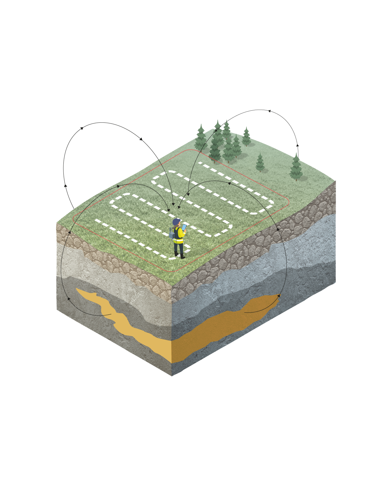 Geophysical ground surveys are typically carried out when a geological area of interest has been identified and exploration requires more detailed investigations. Boliden carries out electromagnetic, electrical, magnetic, and gravimetric ground surveys. Ground surveys allow for user defined parameter specification with the aim to improve depth of investigation and spatial resolution for quality modeling and interpretation.