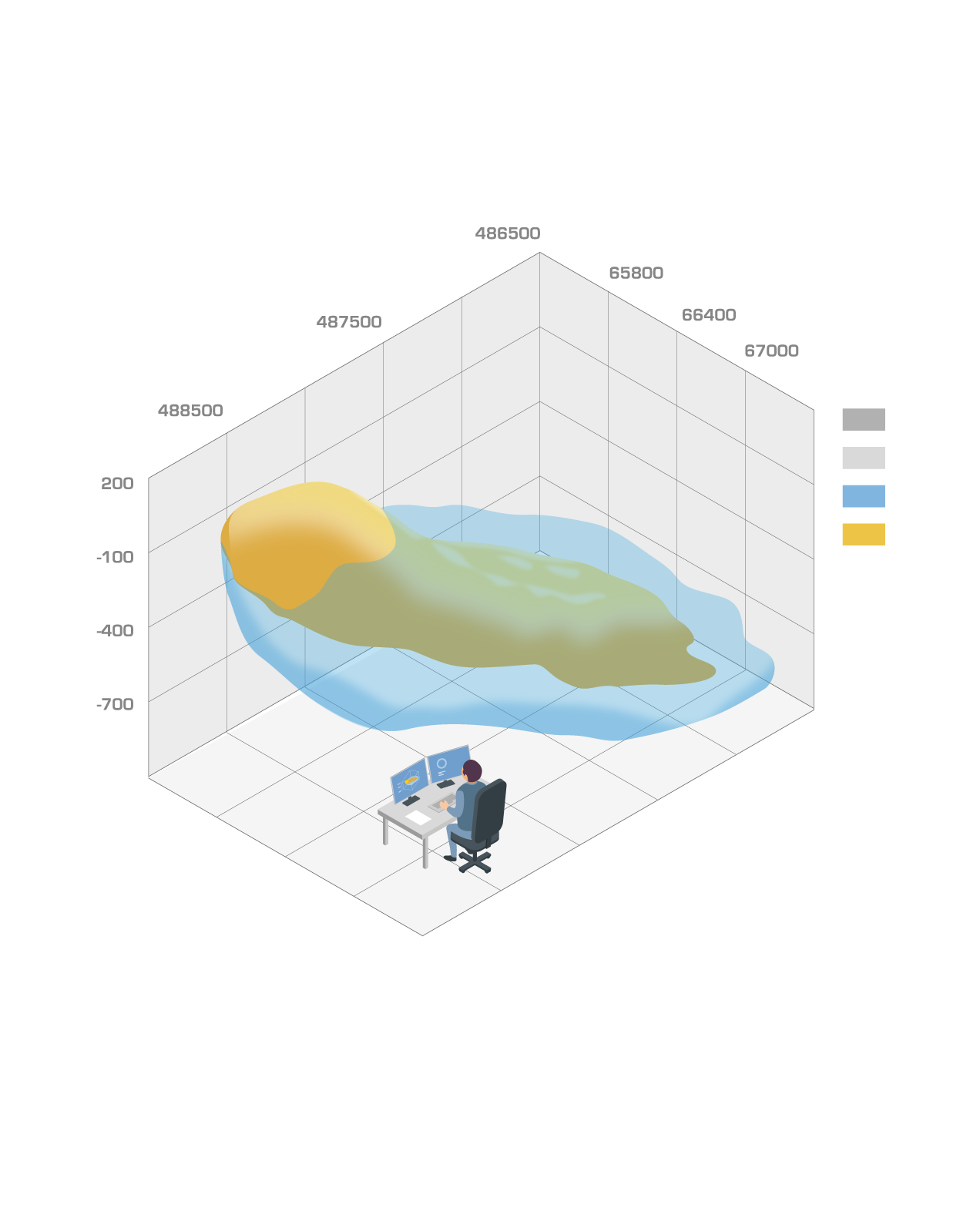 Based on all collected data, 3D models of the bedrock describing the geology, mineralization and economic parameters are created that guide the creation of mine plans and decision-making in mining operations.