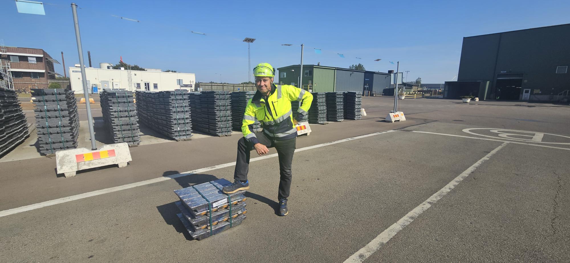– Bland Bolidens smältverk är vi en udda fågel, för vi är den enda verksamheten som inte hanterar material från gruvorna. Vi har inget primärt material utan jobbar bara med återvinning, framför allt av batterier, men även annat blyskrot. För något år sedan fick vi exempelvis in ett nedmonterat blytak från Lunds domkyrka, det var lite annorlunda!